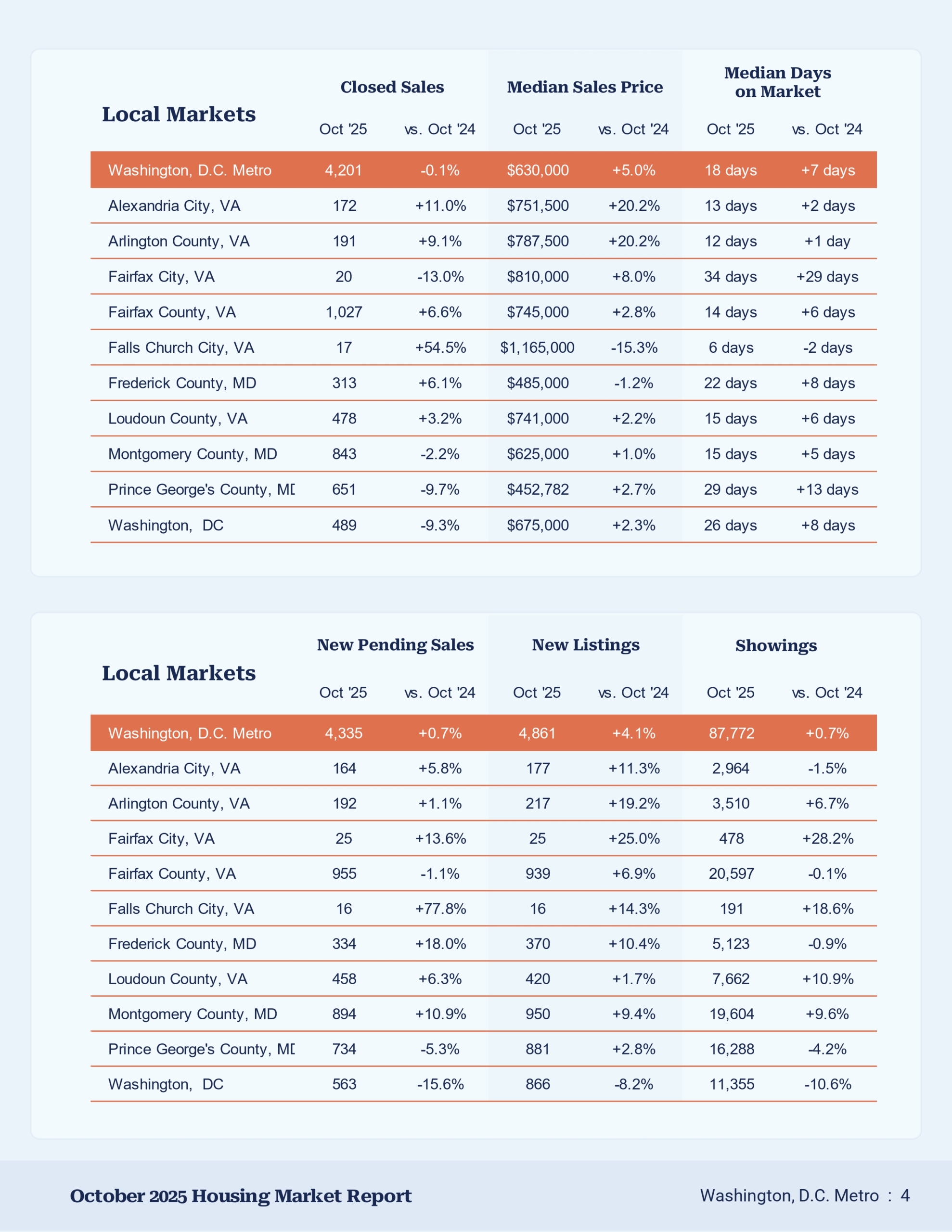 D.C. Metro housing market data, November 2025.
